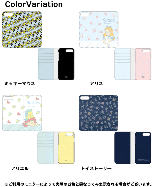 ディズニーキャラクター / iPhone8Plus/7Plus対応フリップカバー ディズニーキャラクターデザインのiPhone8Plus/7Plus対応フリップカバーが登場! 人気のキャラクターをちらし柄にかわいくデザインしました! ケースを装着したままライトニングケーブルやイヤホンの接続が可能! 充電し放題!音楽聞き放題! 全4種 「ミッキーマウス」 「アリス」 「アリエル」 「トイ・ストーリー」 iPhone8Plus/7Plus全体を覆う手帳型ケースPU製のプロテクトケースです。